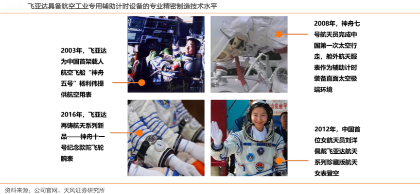 經典案例:根據公司官網、天風證券研究所等綜合資訊表明,飛亞達已經具有手表自有機心和關鍵零部件制造、航天航空表研制與高端制表技藝等方面的專業(yè)制表能力。 2018 年起公司獨立劃分出精密科技業(yè)務板塊,目前擁有 2 家國家高新技術企業(yè),獲得專利 授權 446 項;主導編制國家鐘表行業(yè)標準數占比高達 55%,主導及參與了多項國際標準的編制。“優(yōu)質的技術識別”成為其打造產業(yè)品牌的“有利武器”。