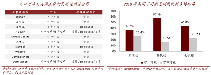 經(jīng)典案例:根據(jù)公司官網(wǎng)業(yè)績(jī)材料、中金公司研究部、Euromonitor等綜合資訊表明,經(jīng)過(guò) 130 多年的發(fā)展,可口可樂(lè)建造了世界上最大的飲料分銷系統(tǒng),在超過(guò) 200 個(gè)國(guó)家或地區(qū)銷售可口可樂(lè), 2019 年公司在全球共擁有3,000 萬(wàn)個(gè)銷售網(wǎng)點(diǎn), 覆蓋了全球約 60%的零售店。
