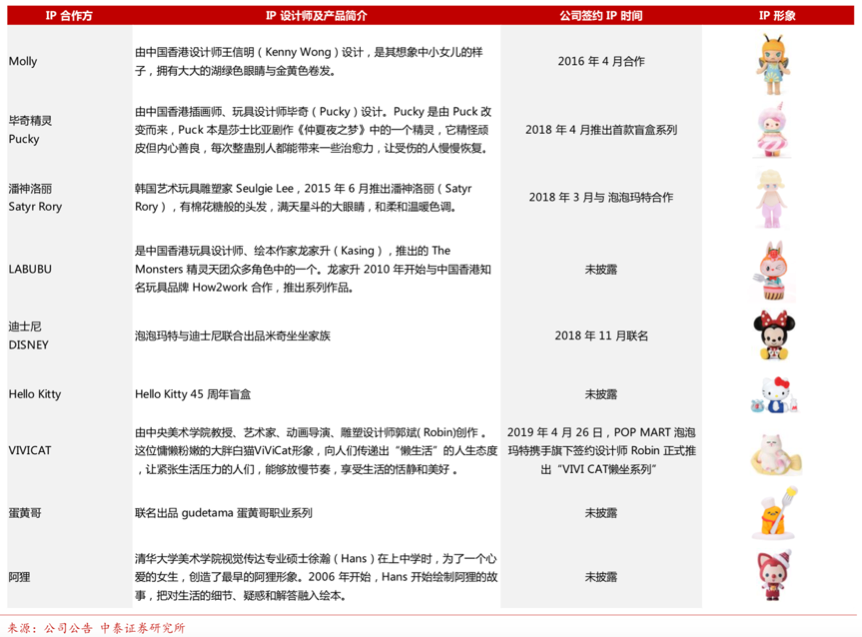 經(jīng)典案例:根據(jù)公司公告、中泰證券研究所等綜合資訊表明,泡泡瑪特?fù)碛凶杂?nbsp;IP和獨(dú)家IP兩類,對(duì)于自有IP,公司享有完全知識(shí)產(chǎn)權(quán),包括開發(fā)以及銷售潮流 玩具以及授權(quán)獲得額外變現(xiàn)機(jī)會(huì)的權(quán)利。2017-2019 年公司自有IP 產(chǎn)品 的收益分別為 0.4/2.16/6.27 億元。而對(duì)于獨(dú)家 IP,公司與設(shè)計(jì)師簽訂授權(quán)協(xié)議,藝術(shù)家一般為公司提供中國(guó)及其他區(qū)域開發(fā)及銷售基于 IP 產(chǎn)品的潮流玩具的獨(dú)家權(quán)利。