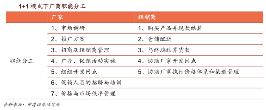 經(jīng)典案例:根據(jù)申港證券研究所等綜合資訊表明,藍(lán)色經(jīng)典推出之初,洋河提出 1+1 深度協(xié)銷模式:廠家負(fù)責(zé)動(dòng)銷,經(jīng)銷商負(fù)責(zé)物流與資金流;廠家承擔(dān)市場(chǎng)開拓和銷售環(huán)節(jié)的風(fēng)險(xiǎn)、推廣品牌的全責(zé),廠商分工明確、戰(zhàn)略性協(xié)同。