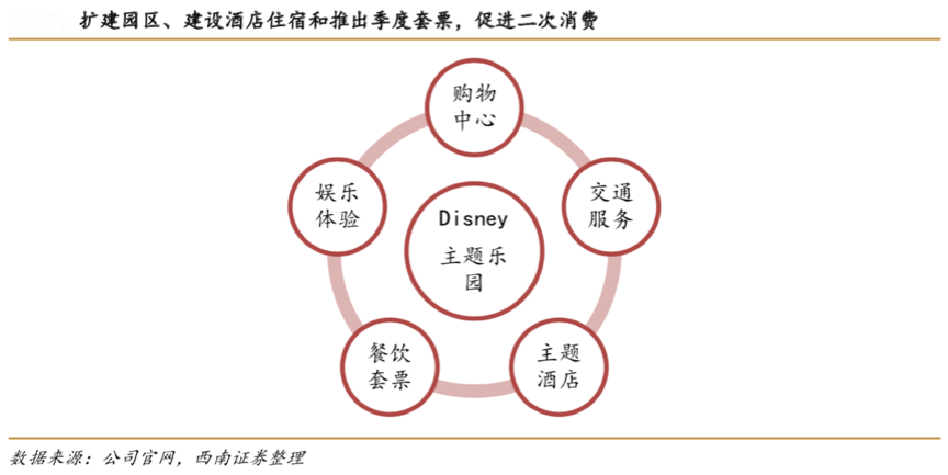 經(jīng)典案例:根據(jù)公司官網(wǎng)、西南證券等綜合資訊表明,迪士尼主題樂(lè)園的門票定價(jià)策略靈活,根據(jù)訂購(gòu)時(shí)間、住宿時(shí)間以及套票的不同促銷形式,針對(duì)不同主題,園區(qū)推出一票通,提高過(guò)夜率。 例如東京迪士尼推出“HOTEL + PARK TICKET + FASTPASS + SHOWVIEWING TICKET + BREAKFAST”的方式,綁定游園、住宿、餐飲、觀光等多方面服務(wù),增加游客在園區(qū)的停留時(shí)間,刺激二次消費(fèi)。