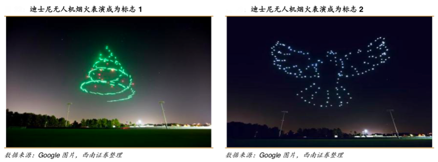 經(jīng)典案例:基于Google圖片、西南證券等綜合資訊表明,迪士尼無(wú)人機(jī)煙火表演成為企業(yè)的重要標(biāo)志之一,其將品牌IP和樂(lè)園體驗(yàn)項(xiàng)目完美結(jié)合;在 2019 年上新的星戰(zhàn)主題公園中,迪士尼匯集各項(xiàng)專利技術(shù),除了主題樂(lè)園常用 AR/VR 技術(shù)外, 采用全息投影、無(wú)人機(jī)、面部識(shí)別等方式,利用高新科技打造沉浸式入園體驗(yàn)。