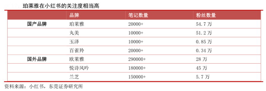經(jīng)典案例:根據(jù)小紅書、東莞證券研究所等綜合資訊表明,珀萊雅在小紅書平臺(tái)的相關(guān)筆記數(shù)量達(dá)到 2 萬(wàn)多條,且珀萊雅自身的小紅書賬號(hào)的粉絲數(shù)量達(dá)到54.7萬(wàn),在國(guó)產(chǎn)品牌內(nèi)排名前列,反映了其在社交平臺(tái)的營(yíng)銷投放已初見(jiàn)效果,關(guān)注度相當(dāng)高,產(chǎn)業(yè)品牌營(yíng)銷策劃初見(jiàn)成效。