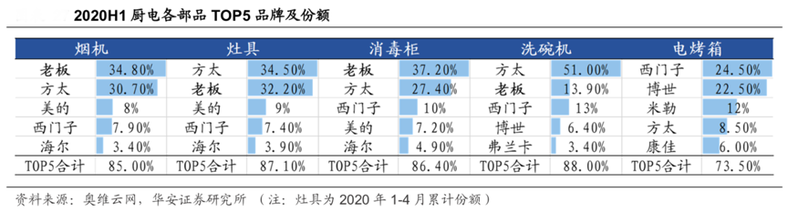 經(jīng)典案例:根據(jù)奧維云網(wǎng)、華安證券研究所等綜合資訊表明,廚電各部品工程渠道品牌集中度遠高于零售渠道,且市占率較高的都是老板、方太、西門子等定位高端的品牌,越高的“品牌力”越能掌握商業(yè)合作的主動權(quán)。