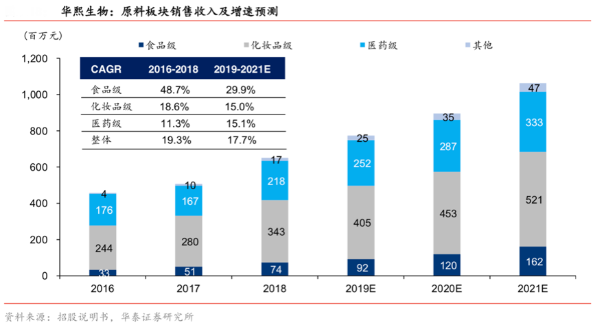 經(jīng)典案例:根據(jù)招股說明書、華泰證券研究所等綜合資訊表明,華熙生物是全球最大的透明質(zhì)酸生產(chǎn)及銷售企業(yè)(2018年銷量全球占比 36%,第二至第五名市場份額均不超過12%)。在技術(shù)要求最為嚴格的醫(yī)藥級原料市場,其具有全球注冊資質(zhì)全面的獨特優(yōu)勢(7項國內(nèi),21項海外,包括美國、歐盟、日本等發(fā)達市場),向全球醫(yī)藥、化妝品、食品制造企業(yè)提供 2kDa-4,000kDa 多種分子量段精準(zhǔn)控制的原料產(chǎn)品(200+規(guī)格),領(lǐng)跑地位明顯。