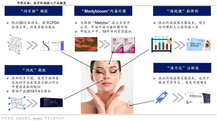 經(jīng)典案例:根據(jù)招股說明書、Insight和華泰證券研究所等綜合資訊表明,截至 2018年底,華熙生物醫(yī)療終端線已有20+產(chǎn)品,覆蓋皮膚科、骨科、眼科等多個領(lǐng)域。
