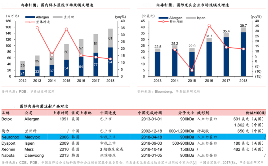 經(jīng)典案例:根據(jù)CDE、PDB、華泰證券研究所等綜合資訊表明,2015 年華熙生物與韓國肉毒巨匠 Medytox 成立合資公司,2018 年 4 月“Neuronox” 申報 NMPA 上市,有望成為中國第三款獲批的肉毒產(chǎn)品。