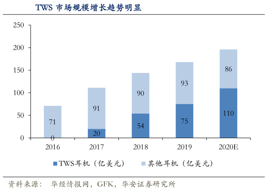 經(jīng)典案例:根據(jù)我愛音頻網(wǎng)、華安證券研究所等綜合資訊表明,結(jié)合Strategy Analytics 等數(shù)據(jù)顯示,2019年全年蘋果的 TWS 耳機出貨量為 5870 萬 臺,占據(jù)市場規(guī)模的一半以上,達到54.4%,這將使得進入蘋果TWS供應鏈的廠商在 TWS 持續(xù)增長中持續(xù)受益。