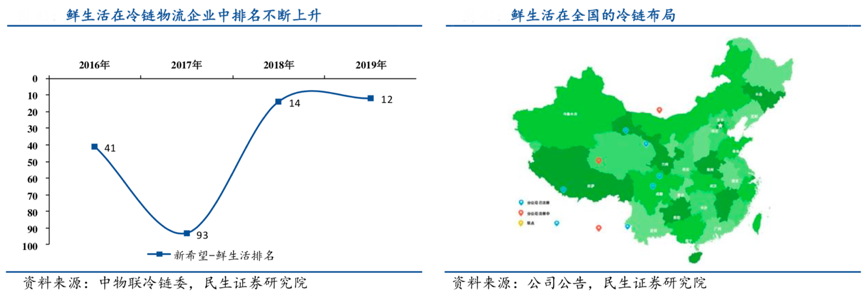 經(jīng)典案例:根據(jù)中物聯(lián)冷鏈委、公司公告、民生證券研究院等綜合資訊表明,新希望集團(tuán)旗下?lián)碛袑I(yè)的冷鏈物流 “鮮生活”,為新乳業(yè)賦能冷鏈。截至 2019 年,“鮮生活”在國內(nèi)冷鏈物流企業(yè)綜合實(shí)力排名第 12,具備全國城市全網(wǎng)服務(wù)能力。