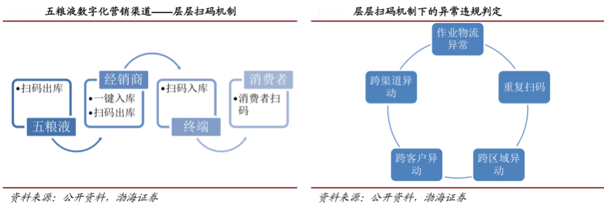經(jīng)典案例:根據(jù)公開資料、渤海證券等綜合資訊表明,五糧液公司正推行“控盤分利”營銷模式。首先基于層層掃碼機(jī)制,對產(chǎn)品流通的透明高效的數(shù)字化跟蹤監(jiān)控以及衡量評估,并結(jié)合層層掃碼數(shù)據(jù),能夠及時(shí)有效識別以及處理渠道異常違規(guī)情況。“數(shù)字化銷售管理”極大提升了營銷數(shù)據(jù)的收集整理及“大數(shù)據(jù)應(yīng)用賦能”。