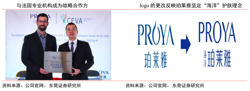 經(jīng)典案例:根據(jù)公司官網(wǎng)、東莞證券研究所等綜合資訊表明,在主品牌珀萊雅上,其不斷地拉升 “海洋”護膚的品牌形象,致力樹立自己在“海洋”護膚領域上的權威。2019 年 3 月,公司從產(chǎn)品研發(fā)為賣點,成立海洋護膚研究中心,同時還正式宣布與兩家尖端海洋生物技術研究院:“法國海洋生物技術專家”CODIF 和“法國國家海藻研究機構”CEVA展開合作。