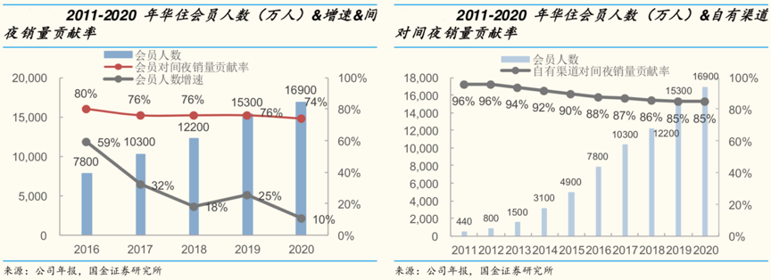 經典案例:根據公司年報、國金證券研究所等綜合資訊表明,2019年,華住為國內擁有最大會員計劃的酒店,會員貢獻約74%的間夜量。以 2019 年數字來看,華住已達到全球十大酒店集團中售予忠誠計劃會員的最高間夜比例。截至 2020 年年報,華住已擁有 1.69 億會員。