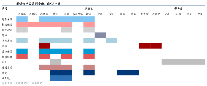 經(jīng)典案例:根據(jù)薇諾娜官網(wǎng)、華泰研究等綜合資訊表明,2005年6月貝泰妮聯(lián)合昆明醫(yī)科大學(xué)第一附屬醫(yī)院皮膚科、中國(guó)科學(xué)院昆明植物研究所,通過(guò)醫(yī)、產(chǎn)、學(xué)、研結(jié)合, 從云南6000多種植物中,選出青刺果、馬齒莧、滇重樓、滇山茶作為產(chǎn)品的四大核心成分,并進(jìn)行12000次以上的肌膚實(shí)測(cè)驗(yàn)證,2008 年薇諾娜首次于第四屆中國(guó)皮膚科醫(yī)師年會(huì)上亮相?;谑婷羲幚砝砟睿?nbsp;旗下產(chǎn)品涵蓋舒敏保濕、舒緩控油、透白、極潤(rùn)、緊致,防曬等 12 個(gè)系列,69 種單品。