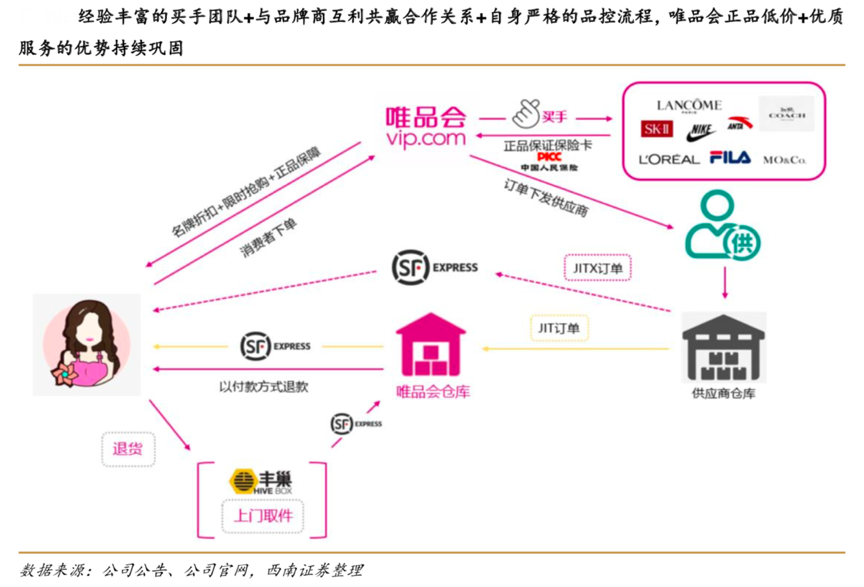 經(jīng)典案例:根據(jù)公司公告、公司官網(wǎng)、西南證券等綜合資訊表明,唯品會(huì)擁有超過千人的專業(yè)買手團(tuán)隊(duì)。買手們憑借豐富的銷售經(jīng)驗(yàn),考慮歷史數(shù)據(jù)、流行趨勢(shì)、季節(jié)和顧客反饋,收集、分析、使用顧客行為交易數(shù)據(jù),通過顧客關(guān)系管理 和智能商務(wù)系統(tǒng),挑選符合潮流和消費(fèi)者欣賞角度的品牌好貨。同時(shí)也向品牌商提供部分信 息,提前跟品牌商談判價(jià)格拿貨。并通過“品牌折扣+限時(shí)搶購(gòu)+正品保障”的商業(yè)模式進(jìn)行營(yíng)銷,激發(fā)消費(fèi)動(dòng)力,保證庫存清理能力。