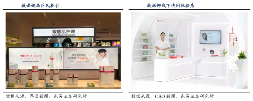 經(jīng)典案例:根據(jù)界面新聞、CBO新聞、東吳證券研究所等綜合資訊表明,薇諾娜正大力強(qiáng)化線下終端體驗(yàn)。(1)入駐專業(yè) CS 連鎖:考慮到屈臣氏對于功效性護(hù)膚品的零售基礎(chǔ)和其在各線城市廣闊的布局,其于 2020 年 6 月正式入駐屈臣氏渠道,也是其入駐的首家連鎖 CS 渠道,根據(jù)界面新聞報道,公司計(jì)劃首批入駐 574 家門店,至2021 年擴(kuò)展至 2000 家,并于三年內(nèi)覆蓋屈臣氏所有門店。(2)開設(shè)品牌體驗(yàn)店:未來其也將開設(shè)部分專門的線下品牌體驗(yàn)門店,內(nèi)部陳 設(shè) AI 測膚等設(shè)備,以達(dá)到增加消費(fèi)者線下體驗(yàn)的機(jī)會、完善消費(fèi)者人群畫像、提升品牌形象與知名度的目的。