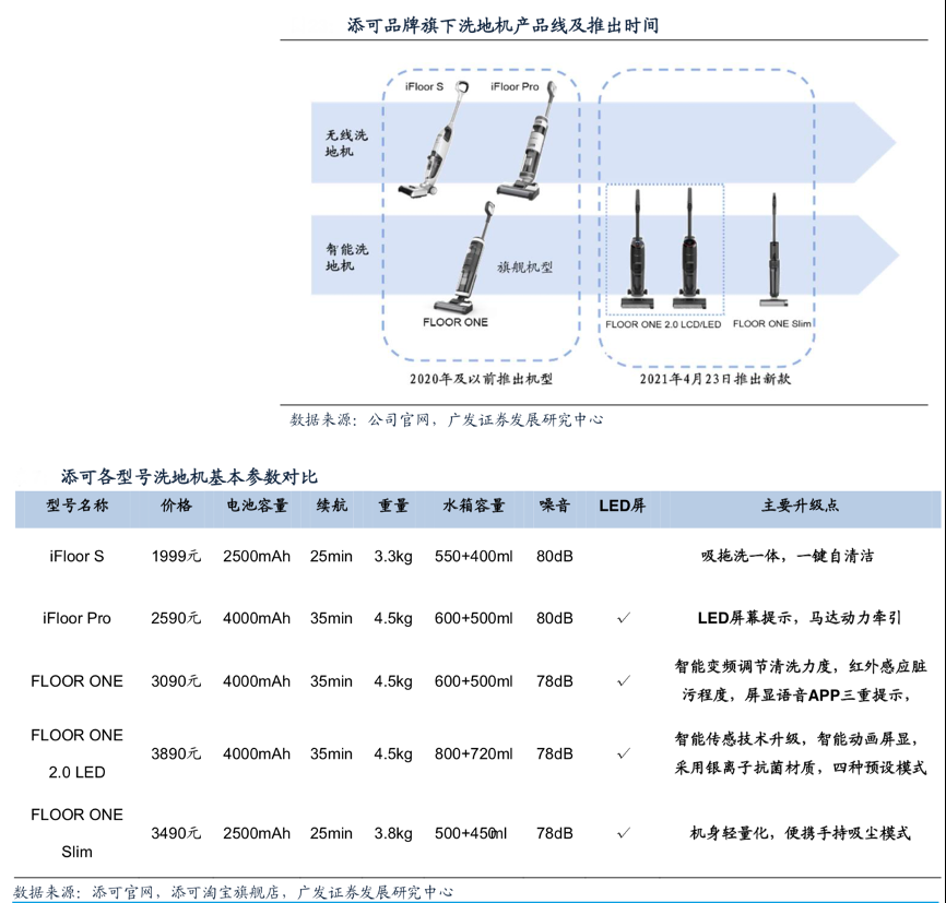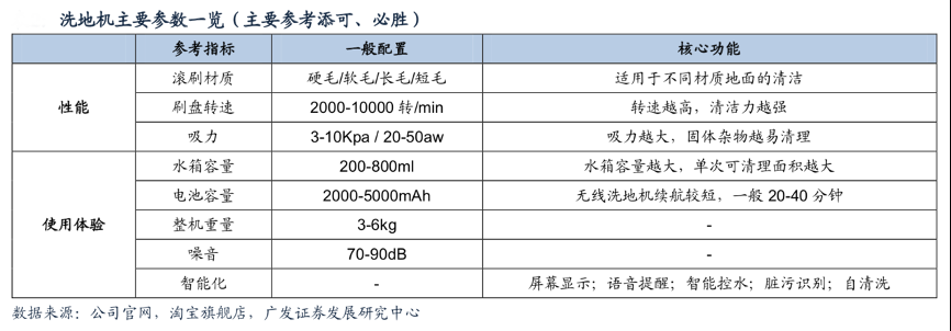 經(jīng)典案例:根據(jù)公司官網(wǎng)、添可官網(wǎng)、添可淘寶旗艦店、廣發(fā)證券發(fā)展研究中心等綜合資訊表明,添可在注重洗地機(jī)基本清潔功能的同時,更偏向通過智能化手段來優(yōu)化用戶使用體驗。市場的反饋普遍是“清潔過程輕松愉快”、“父母也能輕松上手”。從產(chǎn)品研發(fā)角度看,洗地機(jī)產(chǎn)品是在吸拖一體機(jī)的基礎(chǔ)上加入相應(yīng)的智能感 應(yīng)算法,從而實現(xiàn)自動出水、自動滾刷等功能,判斷技術(shù)壁壘并沒有太高。