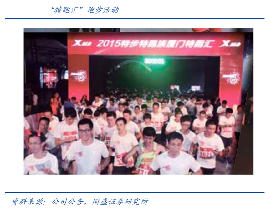 經(jīng)典案例:根據(jù)公司公告、國盛證券研究所等綜合資訊表明,為進(jìn)一步強(qiáng)化跑者與消費者心中特步與跑步的聯(lián)系,2012年起特步陸續(xù)開始在中國的主要城市成立“特跑族”,定期組織以“特跑匯”為代表的跑步活動、教授不同距離的跑步訓(xùn)練以及協(xié)助會員報名參加集團(tuán)贊助舉辦的馬拉松活動,特步也會向所有會員提供的最新專業(yè)跑步裝備,幫助實現(xiàn)更好的參賽表現(xiàn)。