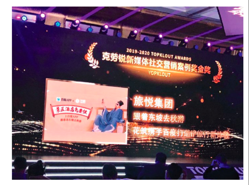 經(jīng)典案例:根據(jù)CCFA《2021CCFA生活服務(wù)行業(yè)優(yōu)秀實踐案例集》等綜合資訊表明,2020年9月11日-10月25日,旅悅集團(tuán)旗下花筑民宿,聯(lián)合百度APP推出智能小程序“跟著蘇東坡去秋游”。打開百度APP,搜索“全民游秋色”, 即可進(jìn)入活動小程序“線上游花筑”,還可參與互動抽取“花筑旅行全球通行證”、“專享優(yōu)惠券”等旅行大獎。該內(nèi)容營銷活動總曝光量超27.5億,引發(fā)了網(wǎng)友們的火熱參與,并獲得2019-2020年度克勞銳新媒體社交營銷案例獎金獎。