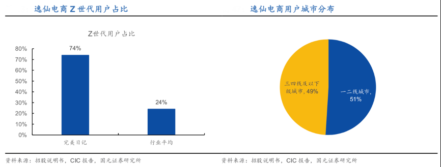 經(jīng)典案例:根據(jù)招股說明書、CIC報告、國元證券研究所等綜合資訊表明,逸仙電商74%用戶為 Z 世代(1996-2009 年間出生的人群),51%的用戶來自一二 線城市。其主品牌完美日記定位大眾時尚彩妝,主要目標(biāo)群體為 Z 世代與千禧一 代的年輕人群,其中 Z 世代用戶占比高達(dá) 74%,顯著高于行業(yè)平均的 24%。同時,其在推出新品牌時通過差異化定位向兩端拓展目標(biāo)群體,如小奧汀價格定位略高于完美日記,重點覆蓋更加精致且價格敏感度更低的年輕女性;完子心選則側(cè)重于覆蓋更加年輕的學(xué)生用戶。