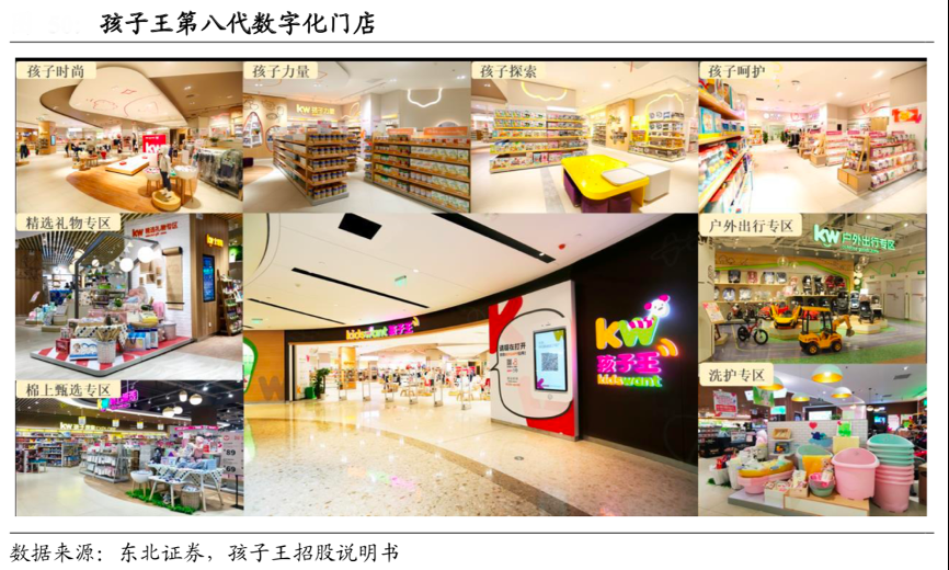 經典案例:根據(jù)東北證券、孩子王招股說明書等綜合資訊表明,孩子王持續(xù)推進門店功能和定位的迭代升級,打造以場景化、服務化、 數(shù)字化為基礎的大型用戶門店。其已從第一代普通線下門店升級為第八代數(shù)字化門店。在商品陳列方面,孩子王門店以情景解決方案為基礎,打造了孩子時尚區(qū)、孩子探索區(qū)、孩子呵護區(qū)、孩子力量區(qū)以及綜合專區(qū)。