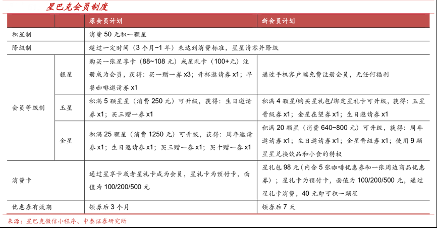 經(jīng)典案例:根據(jù)星巴克微信小程序、中泰證券研究所等綜合資訊表明,星巴克的會(huì)員體系經(jīng)過(guò)多次改革,2018年星巴克取消了購(gòu)買星享卡或星禮包注冊(cè)會(huì)員的制度,用戶通過(guò)手機(jī)端注冊(cè)即可免費(fèi)成為會(huì)員,縮短了降級(jí)制的期限時(shí)間和優(yōu)惠券的有效期促進(jìn)了消費(fèi)頻次提高,進(jìn)一步增強(qiáng)會(huì)員的黏性。2021Q1,星巴克 90 天活躍會(huì)員總數(shù)2180 萬(wàn)人,收入貢獻(xiàn)比高達(dá) 50%,會(huì)員的高粘性是收入增長(zhǎng)的重要基礎(chǔ)。