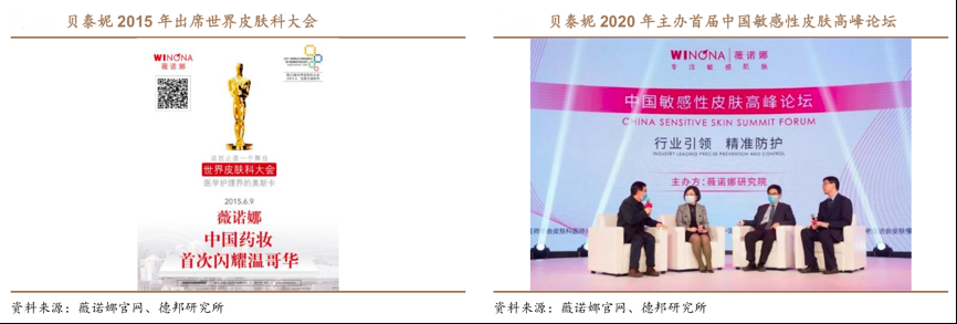 經(jīng)典案例:根據(jù)薇諾娜官網(wǎng)、德邦研究所等綜合資訊表明,2015年薇諾娜參加第 23 屆世界皮膚科大會(huì),成為會(huì)議上首個(gè)亮相的中國(guó)品牌,2019 年會(huì)議上法國(guó)貝桑松大學(xué) Philippe Humbert 教授發(fā)布《中國(guó)品牌·國(guó)際驗(yàn)證》——薇諾娜產(chǎn)品臨床觀察結(jié)果,驗(yàn)證薇諾娜舒敏保濕特護(hù)霜可顯著改善對(duì)敏感性皮膚,主要活性成分馬齒莧、云南獨(dú)有青刺果及蘑菇葡聚糖的“舒緩、修護(hù)、保濕”三大功效,對(duì)薇諾娜的產(chǎn)品力進(jìn)行權(quán)威背書(shū)。