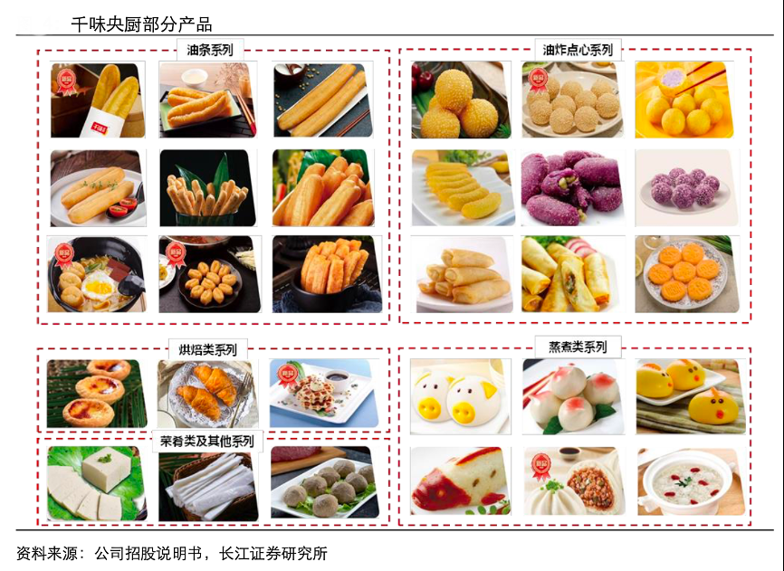 經(jīng)典案例:根據(jù)公司招股說明書、長江證券研究所等綜合資訊表明,千味央廚公司產(chǎn)品分為油炸系列(油條系列以及油炸點心系列)、烘焙系列、蒸煮系列以及菜肴系列,單品數(shù)量達(dá)到 300+,并形成了油條類、蛋撻類、芝麻球類等含稅收入過億大單品。與家庭消費相比,餐飲業(yè)態(tài)的消費場景更為多元化。