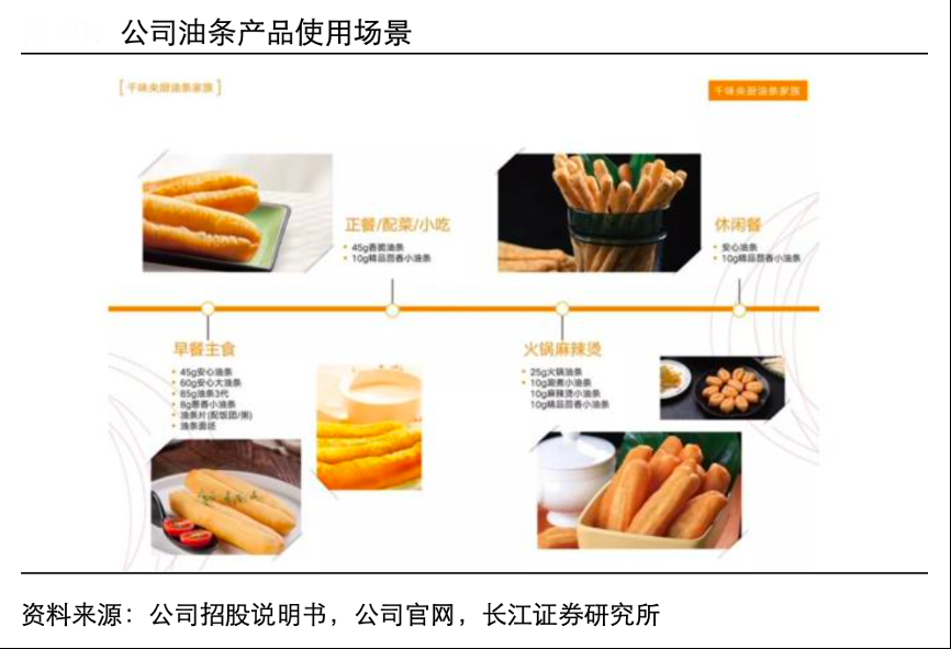 經(jīng)典案例:根據(jù)公司招股說明書、公司官網(wǎng)、長江證券研究所等綜合資訊表明,除了品牌與成本優(yōu)勢,千味央廚公司正積極延伸油條的使用場景,目前其油條產(chǎn)品已經(jīng)細(xì)分出火鍋、快餐、自助餐、宴席、早餐、外賣六大場景,針對不同的場景推出了不同規(guī)格和口味的產(chǎn)品。