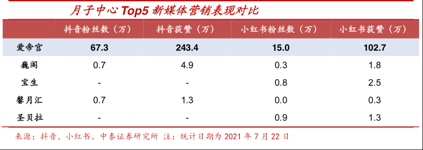 經(jīng)典案例:根據(jù)抖音、小紅書、中泰證券研究所等綜合資訊表明,愛帝宮創(chuàng)新廣告營(yíng)銷、明星營(yíng)銷、新媒體營(yíng)銷等,以抖音平臺(tái)為例,愛帝宮官方賬號(hào)分享大量科學(xué)育兒知識(shí)、新生兒和產(chǎn)褥期護(hù)理經(jīng)驗(yàn)、客戶入住體驗(yàn)分享等大量原創(chuàng)視頻內(nèi)容,截至 2021 年 7 月,積累粉絲數(shù)達(dá) 67.3 萬(wàn),獲點(diǎn)贊數(shù)累計(jì) 243.5 萬(wàn)。