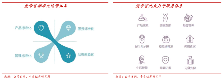 經(jīng)典案例:根據(jù)公司官網(wǎng)、中泰證券研究所等綜合資訊表明,深圳愛帝宮深耕月子中心行業(yè)14年,建立了 9 大月子照護(hù)服務(wù)體系,涉及 1300 多項(xiàng)母嬰健康照護(hù)操作要點(diǎn),為母嬰提供精細(xì)、專業(yè)、科學(xué)、安全的健康照護(hù),同時(shí)其通過產(chǎn)品、服務(wù)、品牌、管理的標(biāo)準(zhǔn)化保證客戶獲得一致的優(yōu)越服務(wù)體驗(yàn)。