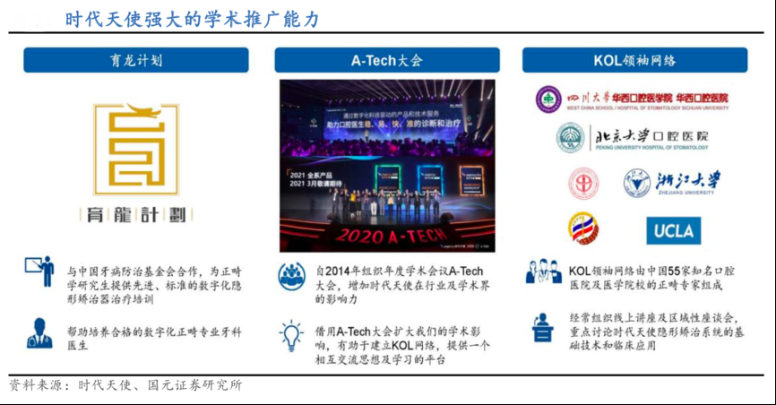 經(jīng)典案例:根據(jù)時代天使、國元證券研究所等綜合資訊表明,時代天使于2017 年和國家體育總局達(dá)成合作,于2018 年獲得 FDA 認(rèn)證,進(jìn)一步加強(qiáng)品牌力。“更懂中國消費(fèi)者”的時代天使,品牌兼具醫(yī)學(xué)認(rèn)知度和消費(fèi)認(rèn)知度,正在迎頭趕上,成為值得中國人信賴的隱形矯治解決方案提供商。