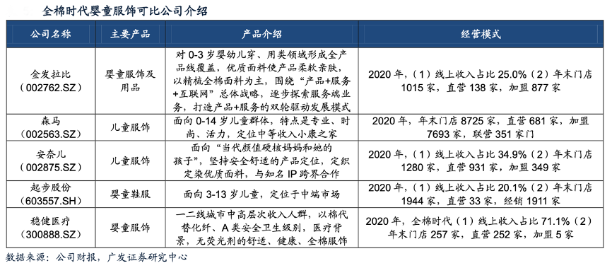 經(jīng)典案例:根據(jù)公司財報、廣發(fā)證券研究中心等綜合資訊表明,全棉時代嬰童服飾定位于一二線城市中高層次收入人群,同時開始通過加盟店形式 逐漸布局三四線城市,憑借其“全棉材質(zhì)”、“無熒光無甲醛添加”,“醫(yī)療背書”等關鍵詞很好地迎合了當下追求天然、健康、舒適、品質(zhì)的消費趨勢。