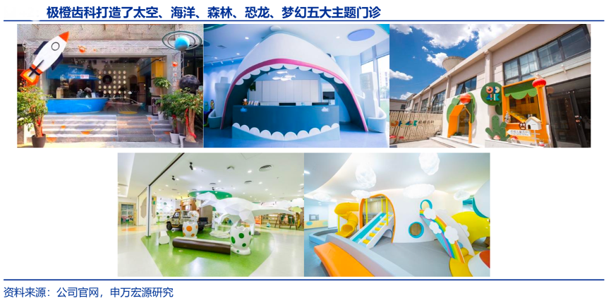 經(jīng)典案例:根據(jù)公司官網(wǎng)、申萬(wàn)宏源研究等綜合資訊表明,極橙以“幫孩子快樂(lè)看牙”為使命,首創(chuàng)沉浸式游戲化看牙體驗(yàn),并將每家診所都打造成孩子 的“主題游樂(lè)場(chǎng)”,為孩子開發(fā)身臨其境的體驗(yàn)?,F(xiàn)已有太空、海洋、森林、海陸空三大主題。