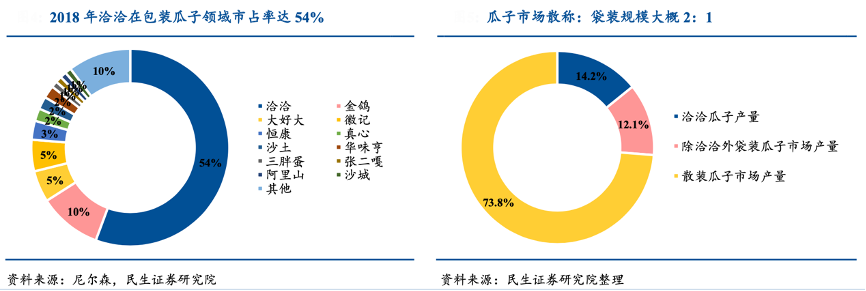經(jīng)典案例:根據(jù)尼爾森、民生證券研究院等綜合資訊表明,結(jié)合尼爾森統(tǒng)計,2018年洽洽在中國包裝瓜子領(lǐng)域已占據(jù)54%的市占率。中國消費者瓜子消費黏性強,瓜子市場需求穩(wěn)定。經(jīng)過多年渠道布局和營銷推廣,“洽洽=瓜子”的品牌認(rèn)知日益深入人心,整體市場競爭格局穩(wěn)固。
