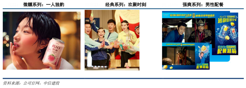 經(jīng)典案例:根據(jù)公司官網(wǎng)、中信建投等綜合資訊表明,百潤股份微醺系列以“一個(gè)人 的微醺”為核心定位,通過廣告視頻和廣告詞,搭建女性獨(dú)飲的消費(fèi)場景。2018 年周冬雨成為微醺系列代言人,演繹了“一個(gè)人的小酒時(shí)光”的廣告視頻,成功精準(zhǔn)到了女性“一人獨(dú)酌”的消費(fèi)場景。經(jīng)典系列基于《奔跑 吧兄弟》、《愛情公寓》等多主角生活影視和綜藝的宣傳,打造了以年輕消費(fèi)群體的交友聚會為主的消費(fèi)場景。強(qiáng)爽系列基于 8 度酒精度數(shù)的特征,以及《軍師聯(lián)盟》影視劇宣傳、小S代言,定位于追求快速放壓減壓和高 腹脹度的男性化群體。