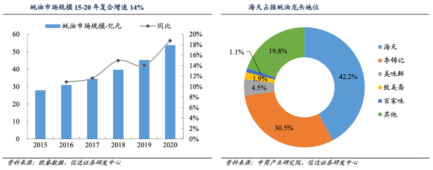 經(jīng)典案例:根據(jù)歐睿數(shù)據(jù)、中商產(chǎn)業(yè)研究院和信達證券研發(fā)中心等綜合資訊表明,海天憑借不斷創(chuàng)新拓展產(chǎn)品和下沉渠道,并改進技術(shù)降低成本,利用性價比優(yōu)勢使得蠔油成為大眾調(diào)味品,推廣至全國,海天也由此占據(jù)了蠔油行業(yè)龍頭地位。按零售口徑2015年海天蠔油市占率為33.3%,截止到 2019 年提升 8.9 個百分點至 42.2%。