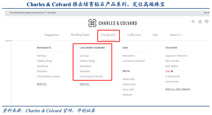 經(jīng)典案例:根據(jù)Charles & Colvard官網(wǎng)、華創(chuàng)證券等綜合資訊表明,Charles & Colvard 布局培育鉆石品牌發(fā)力高端市場(chǎng)。2020年9月推出培育鉆石產(chǎn)品系列 Caydia,作為其對(duì)于莫桑石產(chǎn)品市場(chǎng)的有效補(bǔ)充,在高級(jí)珠寶系列中,培育鉆石的 SKU 高達(dá) 305 個(gè),培育鉆石產(chǎn)品的顏色為 E、F、G,凈度為 VS1。
