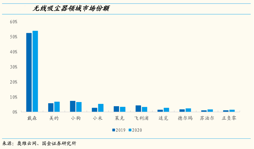 經(jīng)典案例:根據(jù)奧維云網(wǎng)、國金證券研究所等綜合資訊表明,戴森憑借顛覆性的技術突破打開中國市場,2015年戴森革命性升級的核心技術—V6 數(shù)碼馬達電機推動了世界無線吸塵器的一場革命。從技術上看,無線手持吸塵器的核心就是電機,更輕更有效的電機就是行業(yè)的技術壁壘所在。對應到性能上,吸力和續(xù)航是無線吸塵器最重要的兩項指標。