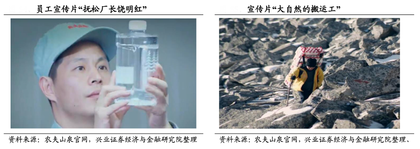 經(jīng)典案例:根據(jù)農(nóng)夫山泉官網(wǎng)、興業(yè)證券經(jīng)濟與金融研究院等綜合資訊表明,農(nóng)夫山泉成立 20 周年之際,公司推出四部廣告片,以員工堅守崗位的故事,彰顯農(nóng)夫山泉 20 年對水源地,對品質(zhì)的堅守,從而實現(xiàn)品牌價值的營銷。“每一個員工的堅守,成就了農(nóng)夫山泉數(shù)十年不變的品質(zhì)”。宣傳片既體現(xiàn)了人文關(guān)懷,也塑造了2016年的生肖玻璃包裝(生肖紀念款)品牌形象。以長白山撫松廠長饒明紅的工作和 生活為例,關(guān)注水和人的故事;以“大自然的搬運工”為例,將公司與搬水工的個 人形象結(jié)合,即使是在極寒山川上,也堅持不懈努力運水給需要的人。