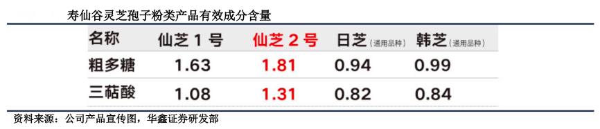 經典案例:根據公司產品宣傳圖、華鑫證券研究部等綜合資訊表明,壽仙谷公司從1993 年開始開展靈芝優(yōu)良新品種的選育工作。經過多年的實驗研究,自主選育出的“仙芝 1 號”和“仙芝 2 號”具有抗逆性強、高產和高活性等特點,且優(yōu)良特性能夠穩(wěn)定遺傳。其中“仙芝 1 號”源 于野生種質,經過誘變選育而成;“仙芝 2 號”則是在“仙芝 1 號”基礎上通過航天 誘變而成。其已為自有靈芝品種建立特定的 DNA 分子圖譜,實現對品種的保護。