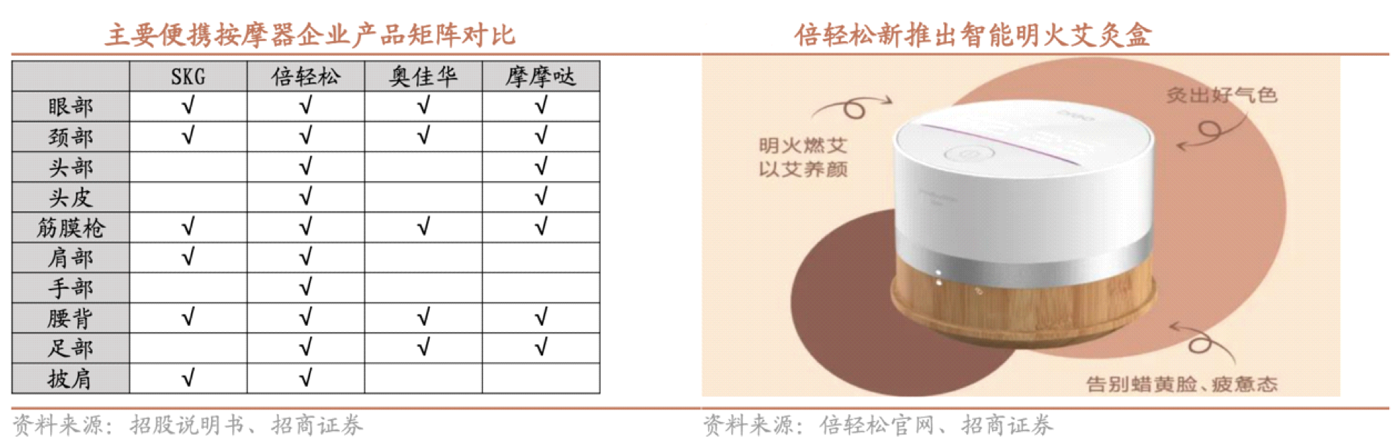 經(jīng)典案例:根據(jù)招股說(shuō)明書(shū)、倍輕松官網(wǎng)、招商證券等綜合資訊表明,倍輕松公司敏銳抓住需求趨勢(shì),快速推出“姜小竹 A1”艾灸盒,將中醫(yī)艾灸與現(xiàn)代科技結(jié)合,針對(duì)傳統(tǒng)明火艾灸容易燙傷 及煙大嗆鼻的用戶痛點(diǎn),內(nèi)置智能芯片,用戶可根據(jù)需求選擇艾灸溫度、艾灸時(shí)長(zhǎng),并通過(guò)特制的可替換式四層濾網(wǎng), 有效吸附過(guò)濾艾柱燃燒過(guò)程中產(chǎn)生的 PM2.5 煙塵,避免艾煙對(duì)呼吸道造成健康困擾,上市后便獲得較高的受歡迎度。