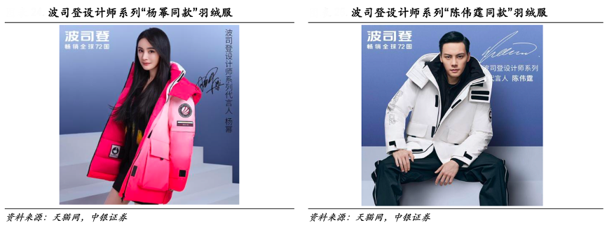 經典案例:根據天貓網、中銀證券等綜合資訊表明,2018年,波司登公司啟動全新戰(zhàn)略“聚焦主品牌”,攜手意大利設計師法比奧在水立方舉辦走秀,發(fā)布品牌戰(zhàn)略、“暢銷全球 72 國”品牌標識與門店形象,為品牌重塑發(fā)聲。波司登設計師系列產品邀請楊冪、陳偉霆作為代言人,以“明星同款”撬動粉絲經濟紅利,推廣品牌的同時提升產品銷量。
