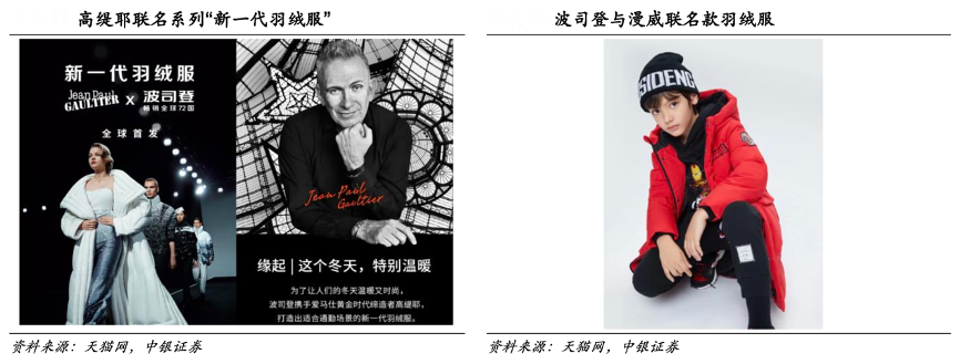 經典案例:根據天貓網、中銀證券等綜合資訊表明,為了應對品牌老化、款式陳舊的問題,為品牌注入年輕時尚的形象,波司登公司整合全球優(yōu)勢資源,引入新想法、新理念,與國際頂尖設計師、知名 IP 合作, 對產品進行了全面升級。其攜手愛馬仕黃金時代締造者高緹耶、時尚設計大師高田賢三、世界知 名時裝設計師埃尼奧 • 卡帕薩等推出聯名系列,款式設計檔次拉升,受到明星大咖、時尚博主的喜愛,引發(fā)搶購熱潮。同時其與華特迪士尼、漫威合作推出聯名款,產品風格更具年輕時尚感,博取年輕消費群體的眼球。