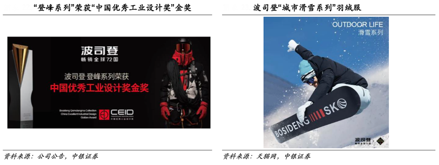 經典案例:根據公司公告、天貓網、中銀證券等綜合資訊表明,波司登公司致力于產品“時尚+功能”的設計理念,以原創(chuàng)設計傳遞“大品牌、好品質、羽絨服代名詞” 的品牌基因,不斷刷新羽絨服行業(yè)的設計美學與功能開發(fā),“登峰系列”榮獲“中國優(yōu)秀工業(yè)設計獎”金獎,“城市滑雪系列”榮獲 ISPO Award 全球設計大獎。其產品注重專業(yè)品質,每件羽絨服至少經過 62 位工藝師、150 道以上的制作工序。