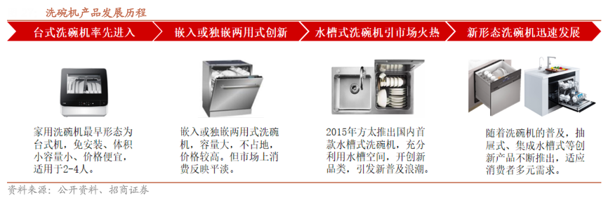 經(jīng)典案例:根據(jù)公開資料、招商證券等綜合資訊表明,我國洗碗機(jī)市場發(fā)展較晚,滲透率發(fā)展緩慢,遠(yuǎn)不及空調(diào)、冰箱等大白電及油煙機(jī)、燃?xì)庠畹却髲N電。2015年,方太針對洗碗機(jī)市場消費痛點創(chuàng)新性推出水槽洗碗機(jī),以簡化安裝程序、節(jié)省廚房整體空間、搭載果蔬清理多功能等賣點獲得消費者認(rèn)可,成為我國洗碗機(jī)市場重要的類型之一,并帶動整體滲透率水平持續(xù)向上。