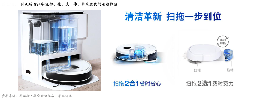 經(jīng)典案例:根據(jù)科沃斯天貓官方旗艦店、華泰研究等綜合資訊表明,2020年云鯨 J1 的成功讓國內(nèi)掃地機(jī)器人企業(yè)意識到該細(xì)分市場較大發(fā)展?jié)摿Γ谑?nbsp;2021年國內(nèi)掀起自清潔技術(shù)的創(chuàng)新浪潮。其中,科沃斯率先跟進(jìn)并在2021 年 1 月推出 N9+,正式加入自清潔類產(chǎn)品的競爭??莆炙?nbsp;N9+在傳統(tǒng)掃拖一體的基礎(chǔ)上,引入云鯨 J1 自動清洗抹布的功能,帶來掃、拖、洗自動銜接的更優(yōu)產(chǎn)品體驗。
