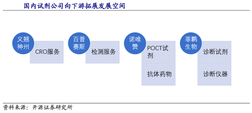 經(jīng)典案例:根據(jù)開源證券研究所等綜合資訊表明,依托在上游生物試劑研發(fā)、生產(chǎn)等優(yōu)勢,各公司紛紛向下游客戶拓展附加服務(wù)或開發(fā)下游終端產(chǎn)品,進(jìn)一步打開公司的發(fā)展空間。義翹神州可以向科研單位及醫(yī)藥研發(fā)、生物技術(shù)企業(yè)提供重組蛋白表達(dá)純化、抗體開發(fā)與生產(chǎn)等定制化服務(wù);百普賽斯為下游客戶提供分子互作分析檢測、抗獨(dú)特型抗體開發(fā)的檢測服務(wù)等。