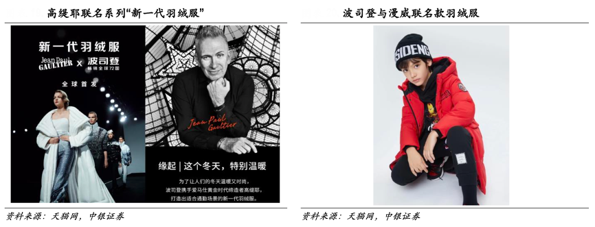 經(jīng)典案例:根據(jù)天貓網(wǎng)、中銀證券等綜合資訊表明,波司登為了應對品牌老化、款式陳舊的問題,為品牌注入年輕時尚的形象,其整合全球優(yōu)勢資源,引入新想法、新理念,與國際頂尖設計師、知名 IP 合作,對產(chǎn)品進行了全面升級。其攜手愛馬仕黃金時代締造者高緹耶、時尚設計大師高田賢三、世界知 名時裝設計師埃尼奧 • 卡帕薩等推出聯(lián)名系列,款式設計檔次拉升,受到明星大咖、時尚博主的喜 愛,引發(fā)搶購熱潮。與華特迪士尼、漫威合作推出聯(lián)名款,產(chǎn)品風格更具年輕時尚感,博取年 輕消費群體的眼球。