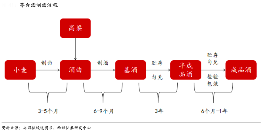 經(jīng)典案例:根據(jù)公司招股說(shuō)明書(shū)、西部證券研發(fā)中心等綜合資訊表明,醬香酒生產(chǎn)過(guò)程中嚴(yán)格的原料、苛刻的產(chǎn)區(qū)、復(fù)雜的工藝、長(zhǎng)周期的儲(chǔ)存和老酒勾兌方法,使得產(chǎn)品具有較好的協(xié)調(diào)度和柔和度;醬香酒在接酒時(shí)溫度在40 度以上,高溫下易揮發(fā)物質(zhì)自然揮發(fā)較多,且經(jīng)過(guò)三年存儲(chǔ),易揮發(fā)物質(zhì)存留較少,對(duì)人體刺激也相對(duì)較少;再者,醬香酒中留存有較多對(duì)人體有益的乳酸和乙酸,更受到人們的認(rèn)可。