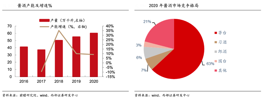 經(jīng)典案例:根據(jù)前瞻研究院、wind、西部證券研發(fā)中心等綜合資訊表明,從競(jìng)爭(zhēng)格局來(lái)看,茅臺(tái)作為超高端醬香鼻 祖,2020 年?duì)I收占比醬酒行業(yè) 63%,地位穩(wěn)固。在近年來(lái)茅臺(tái)直營(yíng)放量及非標(biāo)提價(jià)的持 續(xù)推進(jìn)下,下游醬香酒企加速打開量?jī)r(jià)空間,以郎酒、習(xí)酒為代表的百億級(jí)品牌,2020 年至今針對(duì)紅花郎/青花郎、窖藏系列等核心單品均有提價(jià)行為落地,以國(guó)臺(tái)、金沙為代表 的 50 億規(guī)模內(nèi)酒企,2020 年以來(lái)也有 10-20%左右幅度的價(jià)格變動(dòng)。